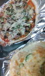 写真は夕飯に作ったタラモピザとトマトソースのピザ。
