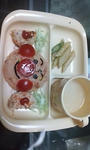 最近興味を持ったアンパンマンにデコレーションしたケーキとご飯を作ってお祝いしました。