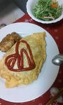 中はチキンライス。わたしは半熟のオムレツをライスの上で切り開く形も好きなのですが、主人は半熟卵があまり好きでは無いようなので普通にくるむ形で作成。
