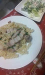 夕飯は菜の花と塩豚のパスタとサラダでした。