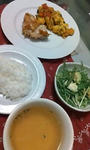 ご飯は鶏肉、玉ねぎ、エリンギを小さめに刻んで醤油、みりん、で味付け、最後に少しのバターを落として甘辛い感じに仕上げました。