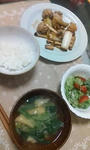 夕飯は鶏とエリンギと長ネギの照り焼きとフレンチサラダ、ほうれん草のお味噌汁でした。