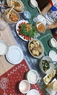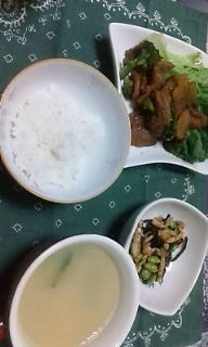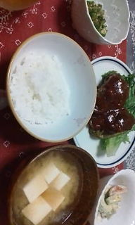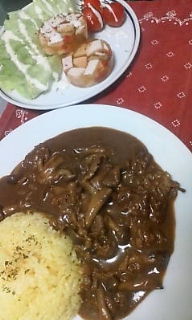 本人の希望で夕飯はハヤシライスと付け合わせに野菜のゼリー寄せ。