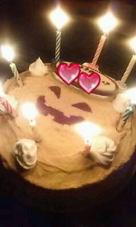 ケーキもハロウィン仕様のパンプキンケーキを自作。ちょっとヨーグルトが強かったかな?