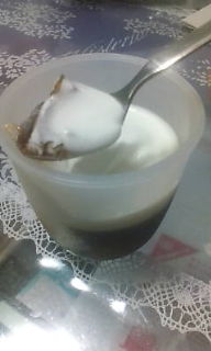 朝バタバタしながらご飯とお弁当の用意をしていたら何を思ったのかいつもより多くコーヒーを淹れてしまい余ったのでコーヒーゼリーを作ってみました。上はホイップクリーム。