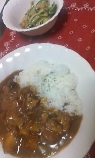 夕飯はカレーライス、アボカドとキュウリのたらこ和えサラダでした。
