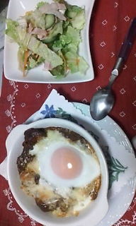 今日の夕飯は予定通りカレードリアとサラダでした。