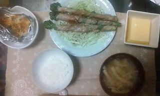 あとは里芋のチーズパン粉焼きと卵豆腐。大根とお揚げの味噌汁。