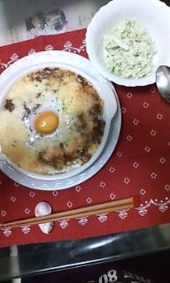 ちなみに焼きカレーは器にご飯を盛り、その上にカレーをかけ、真ん中に卵を落とし、黄身の周りにピザチーズ、パン粉をかけて250℃のオーブンで二十分位焼くだけ。