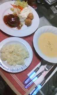 極普通のサッパリ和食にでもしようかと迷いましたが、買い物にでたらクリスマスムードに押され、結局ハンバーグに。
