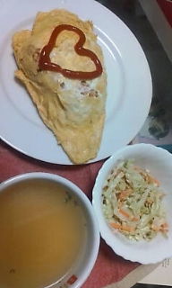 サイドにはコンソメスープとコールスローを添えて。コールスローはたっぷり野菜を摂りたかったのでレンジで一度加熱してからマヨネーズと少量のお酢で和えました。